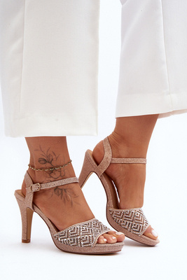 Papuošti aukštakulniai sandalai D&A MR1038-44 rožinės spalvos aukso spalvos