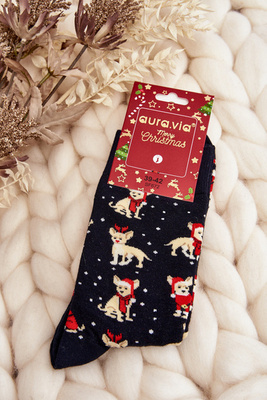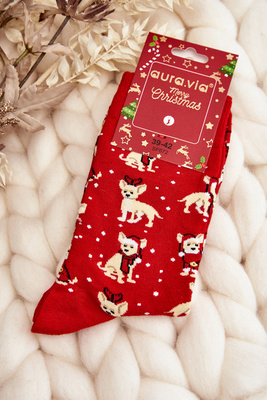Moteriškos kalėdinės kojinės su raudonu šuniuku