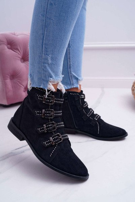Moteriški zomšiniai batai Kniedės Sagtys Juoda Berugio