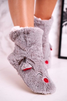 Kalėdinės izoliuotos šlepetės su elnio pilku Rudolfu