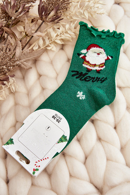 Moteriškos blizgios kalėdinės kojinės su Kalėdų Seneliu Green
