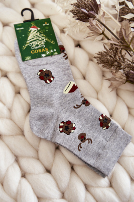 Moteriškos kojinės su Kalėdų raštu Kalėdų eglutės pilkos spalvos