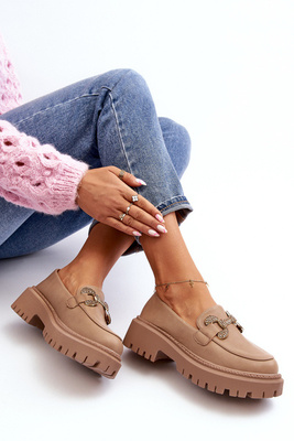 Moteriški mokasinai su dekoracija Tamsiai smėlio spalvos Gargi