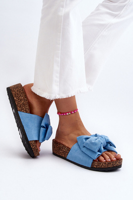 Moteriški kamštinės platformos sandalai su Bow Blue Tarena
