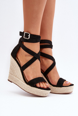 Sandalai su pleištu kulnu ir austa juostele Black Salthe