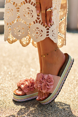Moteriškos basutės su platforma, puoštos gėlėmis Rožinė Nodina