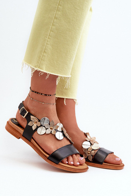 Juodi moteriški odiniai sandalai su „Salvania“ ornamentu