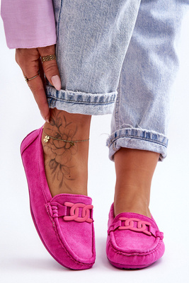Zomšiniai loaferiai su lankeliu ir kutais Fuksijos Dorine