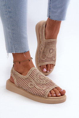 Moteriškos plokščios sandalai, puošti smėlio spalvos Abidina gėlėmis