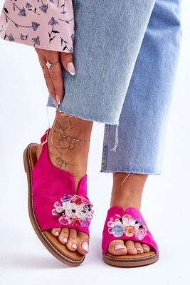 Moteriški šlepetės su dekoratyviniu dirželiu Fuchsia Sublime
