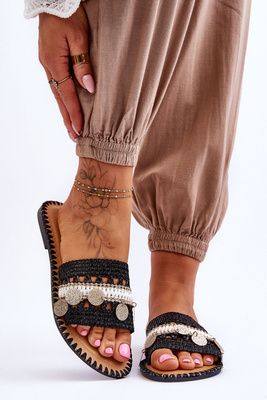 Moteriškos pintos, puoštos šlepetės, juodos Millano