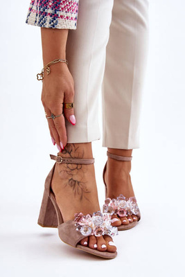 Elegantiški aukštakulniai sandalai su kristalais Tamsiai smėlio spalvos Cameron