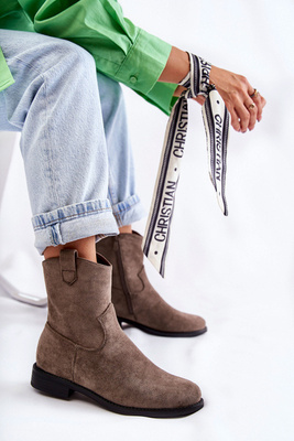 Moteriški zomšiniai batai su kaubojiškais batais, chaki spalvos Ariane