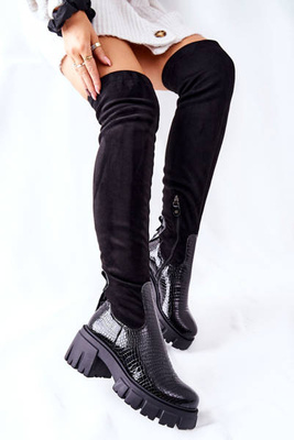 Moteriški aukšti juodi batai Lewski Black Suede 2866