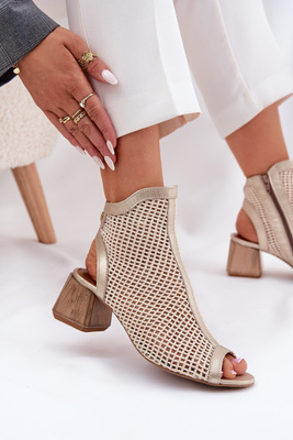 Moteriški Odiniai Auliniai Batai Su Kulnu Ir Atvira Kulno Maciejka 06899-25 Aukso-Bežiniai