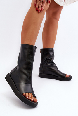 +1Rodyti vaizdo įrašąZazoo 999 odiniai moteriški sandalai su auksiniu užtrauktuku
