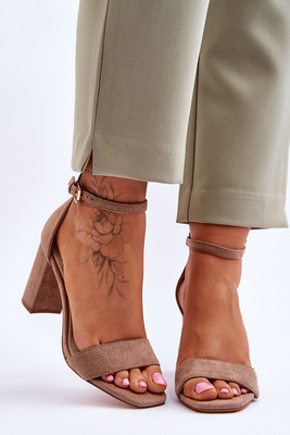 Klasikiniai zomšiniai aukštakulniai sandalai smėlio spalvos Bernett