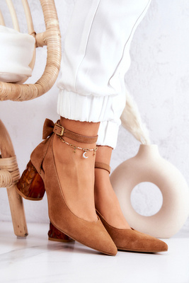 Elegantiški sandalai ant kulno smėlio spalvos Michele