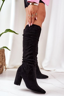 Aukšti batai ant blokinio kulno, pagaminti iš elastingo audinio, juodo efekto Oho