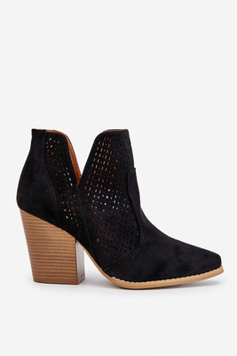 Moteriški batai su zomšiniais ažūriniais juodais atspalviais