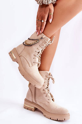 Zomšiniai šilti batai su grandinėle Beige Sorita