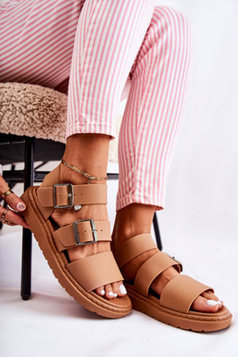 Moteriškos madingos smėlio spalvos Sansa šlepetės