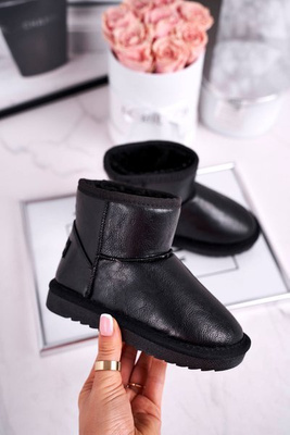Šilti vaikiški batai su kailiu lakuota juoda lėlytė