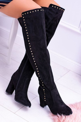 Lu Boo juodi aukšti zomšiniai Cubano cirkonio stiletto batai