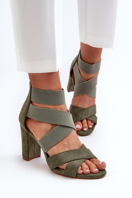 Moteriški sandalai su aukštakulniu kulnu ir dekoratyviniu eko odos dirželiu smėlio spalvos Triavera