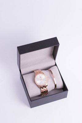 Moteriškas auksinis rožinis Bellos laikrodis su apyranke