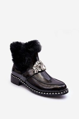 Moteriški odiniai kailiniai batai su kailiu apdaila juodi Rehin