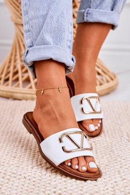 +2Moteriškos klasikinės odinės šlepetės, baltos spalvos Evie