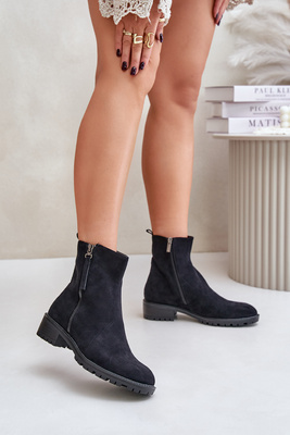 Zazoo 2951 zomšiniai kulkšnies batai su dekoratyvine sagtimi, juodi