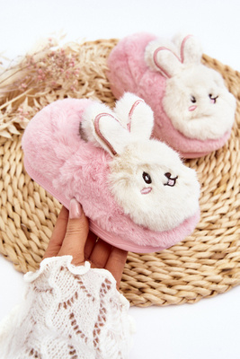 +1Papuci de casă din blană pentru copii cu iepuraș roz Apolanie