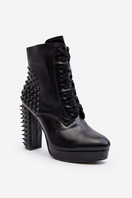 Botine cu toc și nituri negre Alemilla