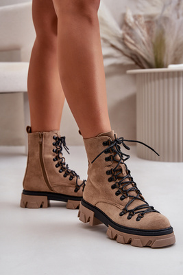 +3Cizme de piele de căprioară pentru femei legate bej vanita
