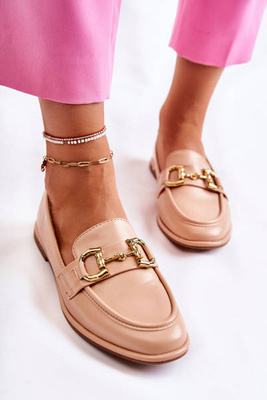 +4Papuci din piele pentru femei cu o cataramă bej devia