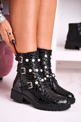 Cizme pentru femei cu perle strălucitoare de animale negre cu un imprimeu Whitney