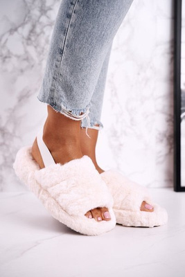 +3Papuci de blană pentru femei pe platformă Orange Cotton Candy