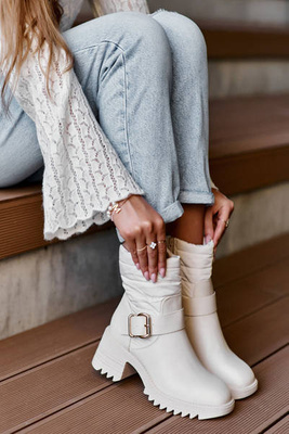 +1Cizme izolate cu cataramă din piele bej Osonia