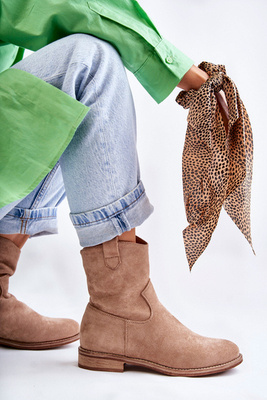 +2Cizme pentru femei din piele de căprioară pentru femei cowboy bej eleonore