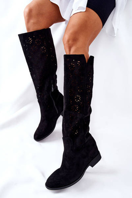 +1Cizme negre înalte pentru femei Lewski Black Suede 2866