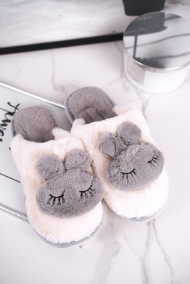 +3Papuci pentru femei cu blana unicorn curcubeu gri