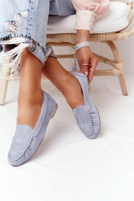 +3Femei din piele de căprioară Moccasins S.Barski Blue Navy