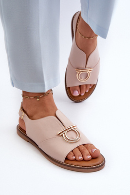 +2Sandale cu Ornament Auriu Vinceza 17321 Bej
