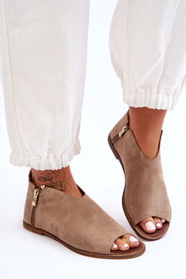 +4Sandaluri cu călcâie înalte din piele de căprioară Dark Beige Madame
