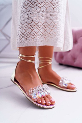 Sandale plate pentru femei cu șampanie zircons karra