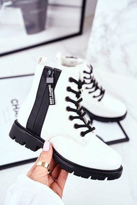 +1Cizme pentru copii calde cu fermoar alb -lăcuit de fermoar