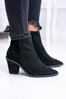+1Cizme cu călcâie cu căldură cu căldură în piele de căprioară neagră