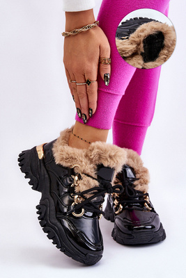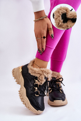 Cizme calde pentru femei cu decorare frontală tilda neagră